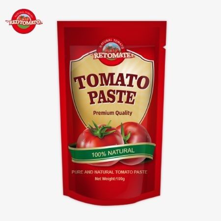 OEM 100g স্ট্যান্ড-আপ প্যাকেট ডাবল ধারণ করে- ৩০% থেকে ১০০% পর্যন্ত বিশুদ্ধতার টমেটো প্যাস্ট